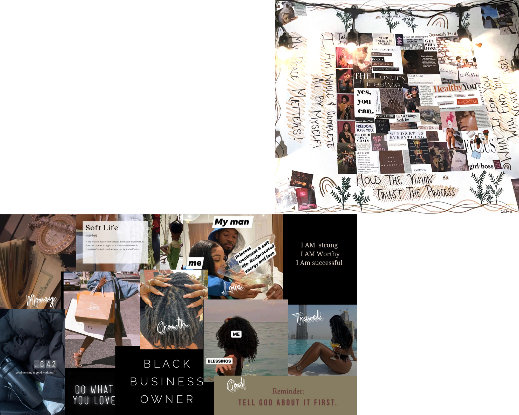 Having vision boards helps remind me daily of all my goals and wants. Having them visually available gives me that extra motivation I need to get through the rough parts of life.